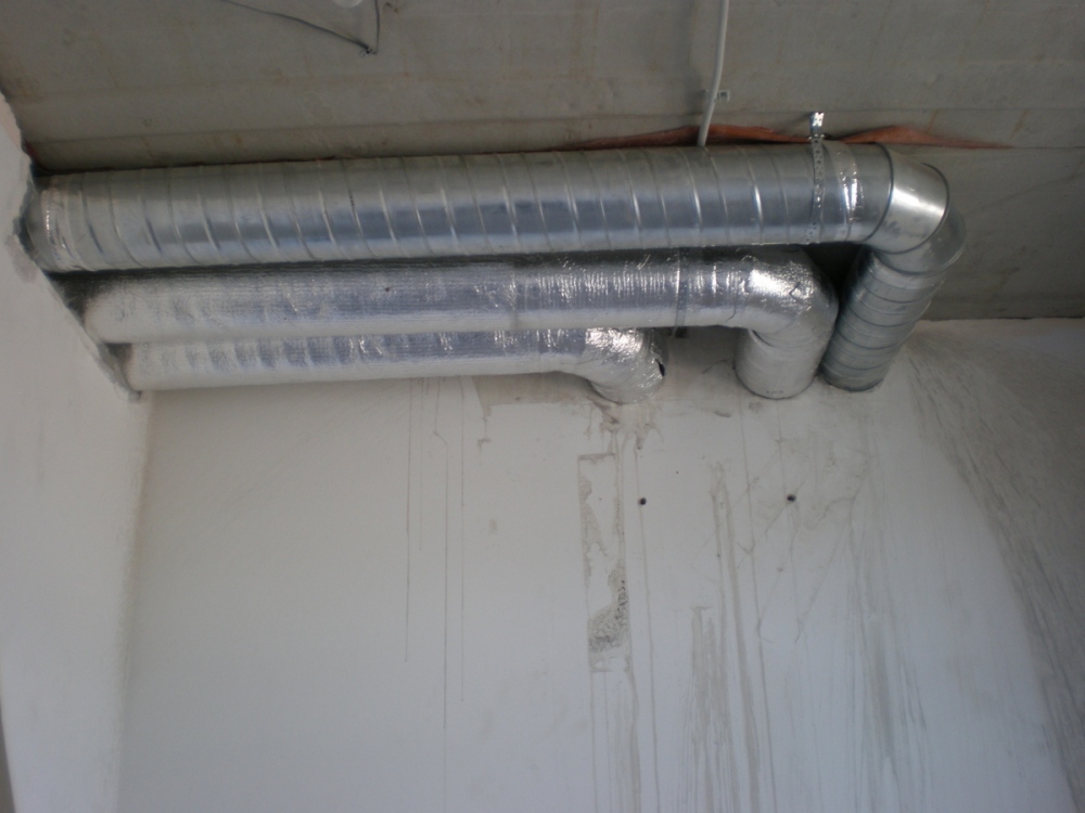 Объект коттедж в Янино. Двухэтажное здание. Необходимо было создать систему вентиляции и кондиционирования, учитывая специфику: довольно большую площадь и очень малые имеющиеся электрические мощности. В итоге за основу были взяты два канальных кондиционера General на 36000 btu. Таким образом, мы получили подмес свежего воздуха и возможность использовать кондиционеры как вместе, так и раздельно. Один кондиционер работает на спальные комнаты - ночной режим, второй на гостиные, комнаты отдыха и т.д. - дневной режим. Также организована вытяжка из туалетов и кухонь.